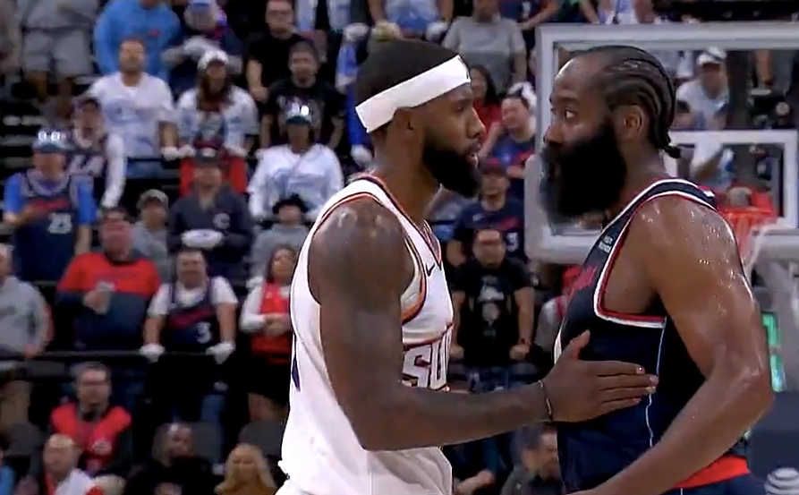 比赛中的火药味并未就此消散。罗伊斯·奥尼尔对哈登犯规后,不停拍打哈登似乎在表达友好,但这种持续的动作让哈登感到不满,最终怒推对方予以回应。半场结束时,哈登9投8中,高效砍下26分。