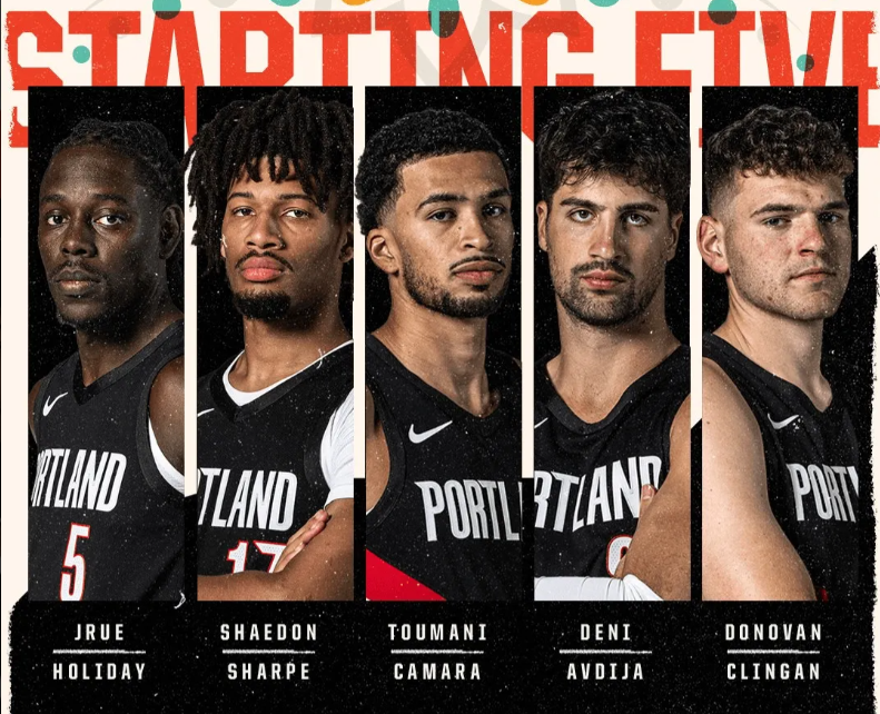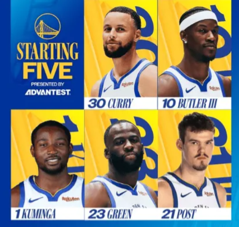 本场比赛,勇士队首发阵容中,穆迪继续因伤缺阵,科尔排出的最新首发五人组为:斯蒂芬-库里、昆滕-波斯特、吉米-巴特勒、乔纳森-库明加、德雷蒙德-格林。开拓者队这边,罗威因伤继续缺阵,首发阵容为:朱-霍勒迪、谢登-夏普、德尼-阿夫迪亚、图马尼-卡马拉、多诺万-克林根。