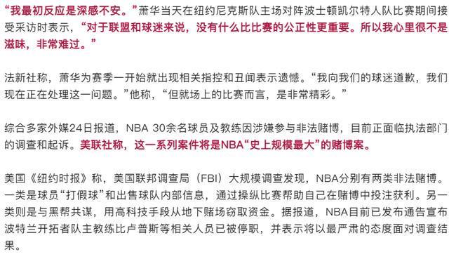 此次赌博案涉及范围之广、影响之深,被媒体称为NBA历史上“前所未有的挑战”。作为联盟最高管理者,亚当·萧华在声明中强调,NBA始终致力于维护比赛的公正性和体育精神,此类事件严重违背了联盟的核心价值观。他同时承诺,将配合相关部门展开全面调查,并采取一切必要措施确保类似事件不再发生。