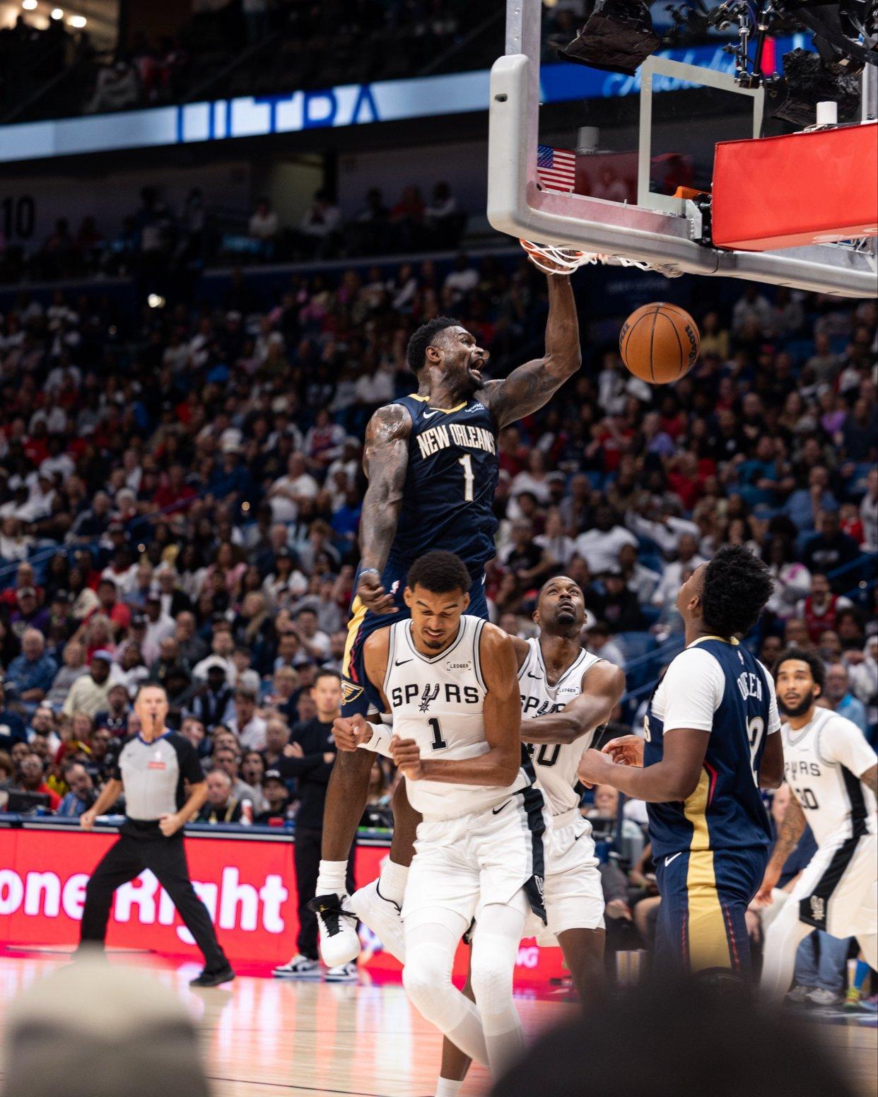 锡安连续罚球得手,鹈鹕打出7-0反超比分。文班亚马下场后,哈珀连得5分,巴恩斯命中关键三分。马刺轰出14-0攻击波,但锡安最后时刻强攻得手,双方107平进入加时。