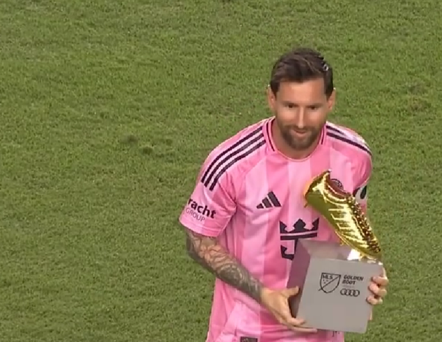 赛前,美职联为梅西颁发了本赛季常规赛最佳射手奖杯,这也是他加盟迈阿密国际后首次荣获常规赛金靴。领奖后的梅西状态神勇,早早为球队打开胜利之门。