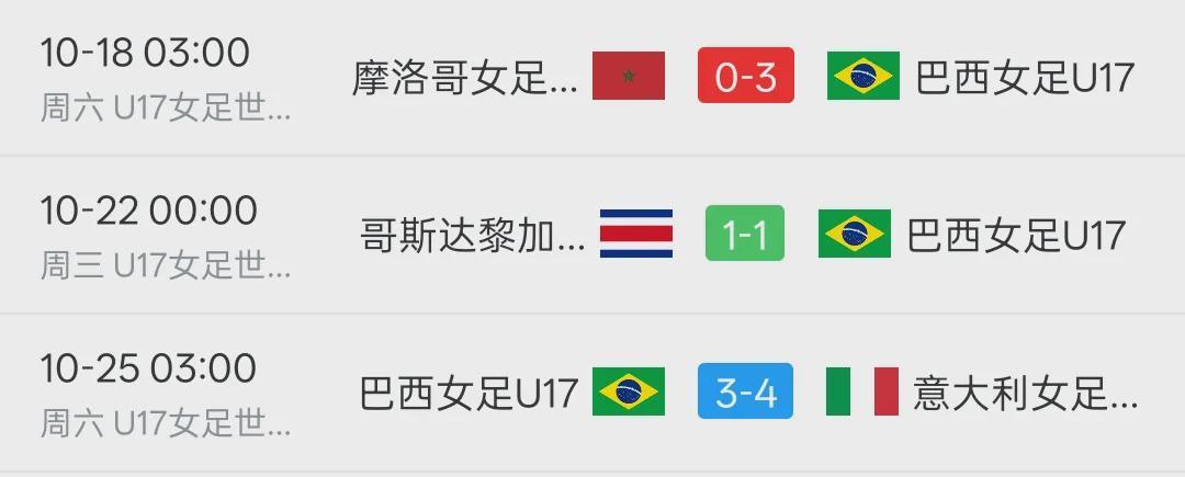 巴西女足作为技术流球队,进攻端表现突出,但防守稳定性一般。小组赛中,她们首轮3-0完胜东道主摩洛哥队,次轮1-1与哥斯达黎加队战平,末轮面对意大利女足,在上半场2球落后的情况下最终追至3-4告负,以1胜1平1负积4分的成绩晋级16强。