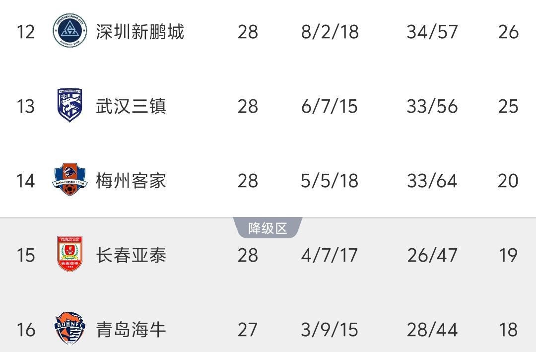 最新积分榜方面,保级形势发生微妙变化。倒数三支球队呈现等差数列排布:亚泰积19分升至倒数第二,梅州客家20分排在倒数第三,青岛海牛18分垫底。这一结果对深圳新鹏城极为有利,他们距离提前保级又近了一步。