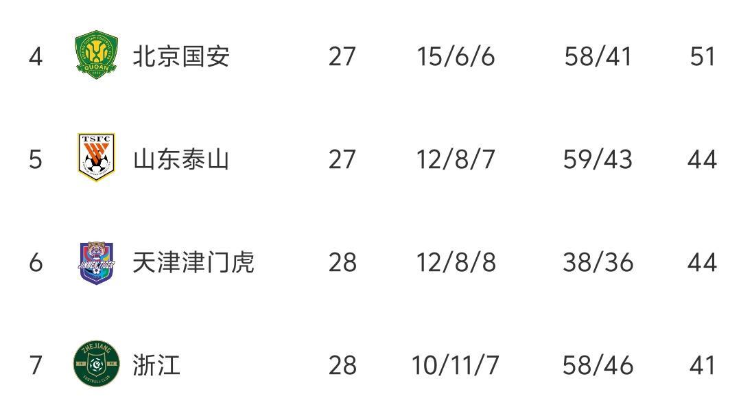 北京时间10月25日,中超联赛第28轮第二个比赛日迎来两场焦点对决。随着比赛的结束,最新积分榜发生显著变化:倒数三支球队呈现等差数列排布,天津津门虎追平山东泰山,河南队则无缘前十。