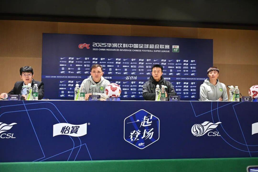 在2025华润饮料中超联赛第28轮北京国安对阵青岛海牛的赛前新闻发布会上,代理主教练拉米罗与球员李磊共同出席,分享了球队的备战情况与对比赛的期待。