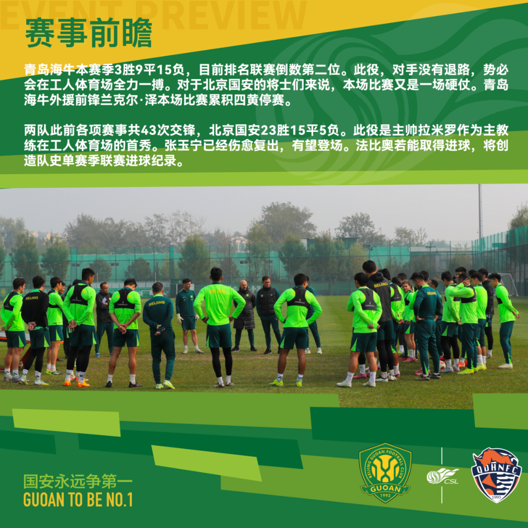 2025华润饮料中超联赛第二十八轮:北京国安迎战青岛海牛