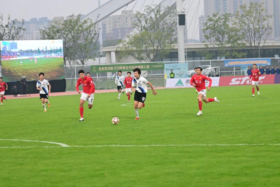 10月25日下午,五粮液山东省齐鲁足球超级联赛5-8名排位赛首回合较量在临沂奥体公园外场地激情上演。做客的日照足球队,在面对上半场两球落后的不利局面时,下半场展开绝地反击,连追三球,最终以3-2的比分逆转战胜主场作战的临沂红箭队。这场胜利不仅让日照队在两回合的5-8名排位赛中占得先机,更让他们带着一场宝贵的客场胜利与三粒进球凯旋而归。