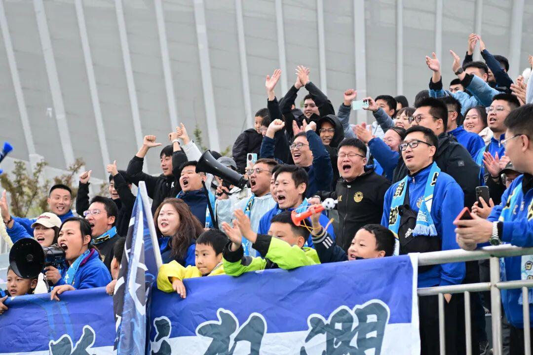 仅仅数分钟后,日照队卷土重来。第78分钟,球队核心9号周浩在禁区前沿接队友传球,不停球直接一脚漂亮的抽射,皮球如出膛炮弹般直挂网窝,将场上比分扳为2-2平!进球后的周浩以滑跪庆祝,释放着内心的激情,这一刻,客场远征的几十名日照球迷的欢呼声响彻球场,将现场气氛推向高潮。
