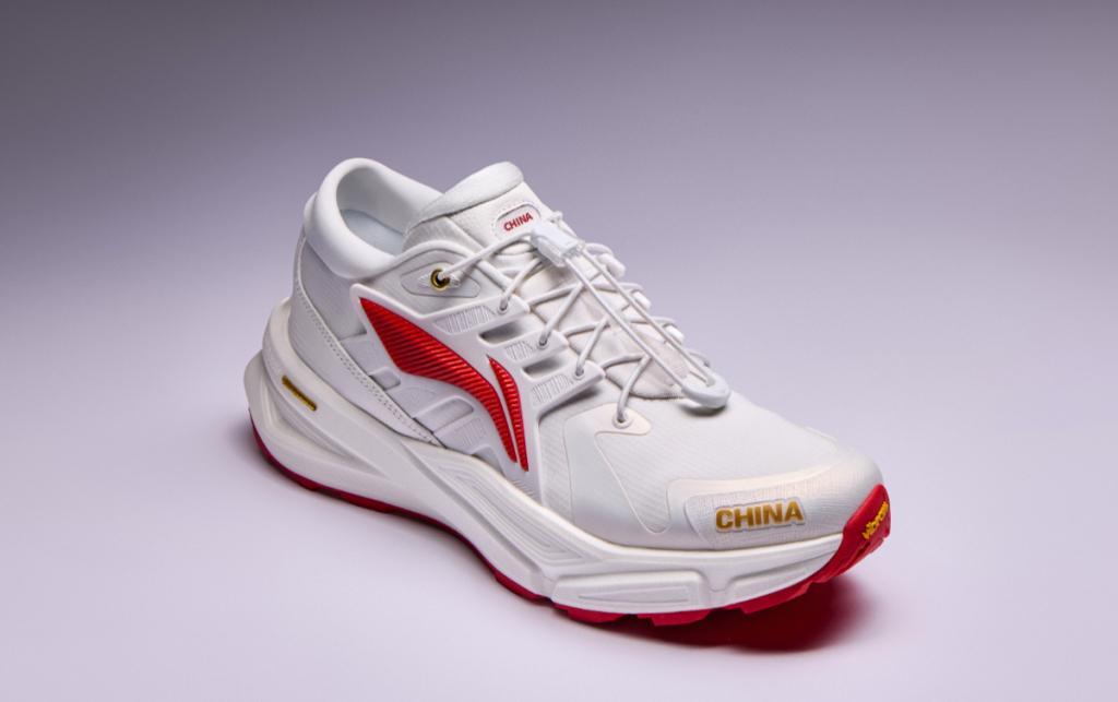 领奖鞋与领奖服配色一致,基于李宁“烈骏”系列进行设计。它汲取了战马的肌肉和骨骼作为设计灵感,寓意着中国运动健儿在马年赛场能够“马到成功”。领奖鞋采用中底科技“超䨻”,鞋大底具备良好的防滑抓地力,鞋面则采用了防泼水和轻防污面料,为运动员提供了全方位的保护与支持。