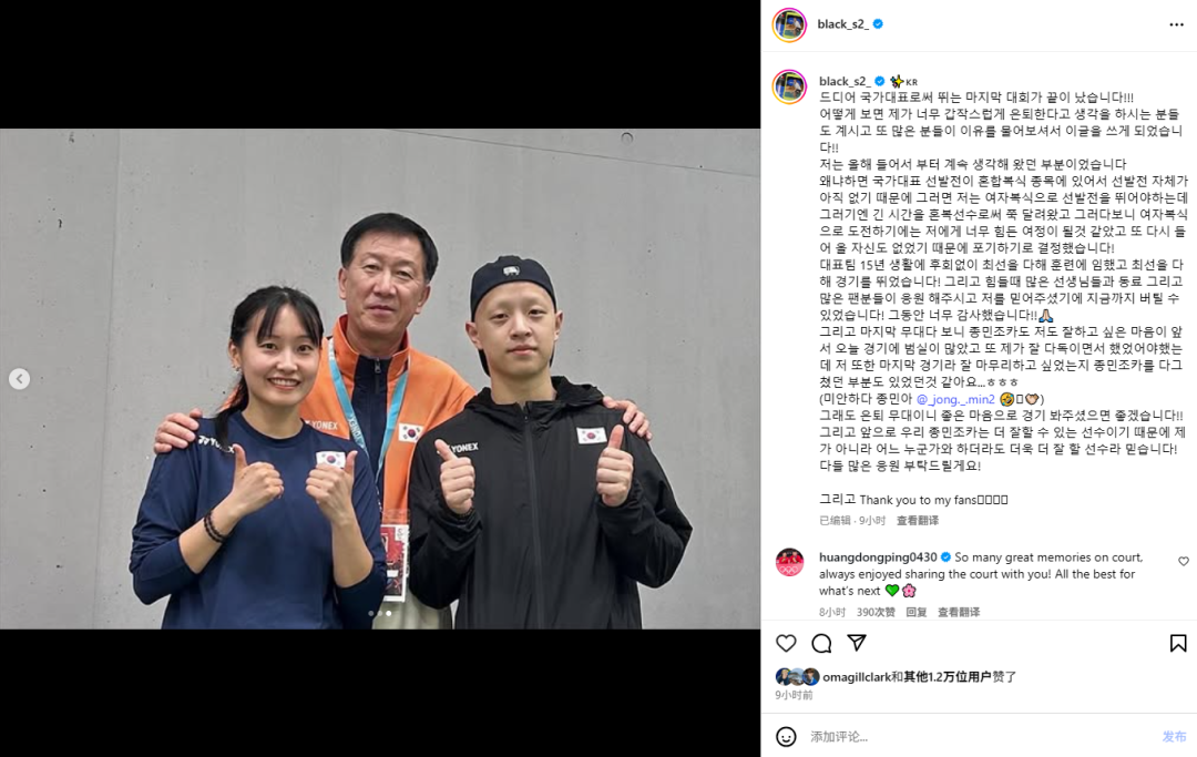 “但对我来说,长时间作为混双选手,要去挑战女双会是一段非常艰难的旅程,我也缺乏再次进入国家队的信心,因此我决定放弃!在国家队这15年的时间里,我问心无愧,全力以赴地投入训练,竭尽所能地参加比赛!在我感到艰难的时候,有许多教练、队友以及无数粉丝的支持和信任,我才能够坚持到现在!一直以来,真的非常感谢大家。”