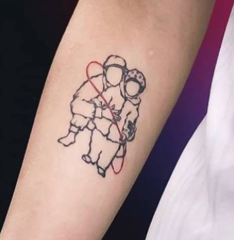 蔡侑玎小臂上的文身,便是自己年幼时与母亲的合照。