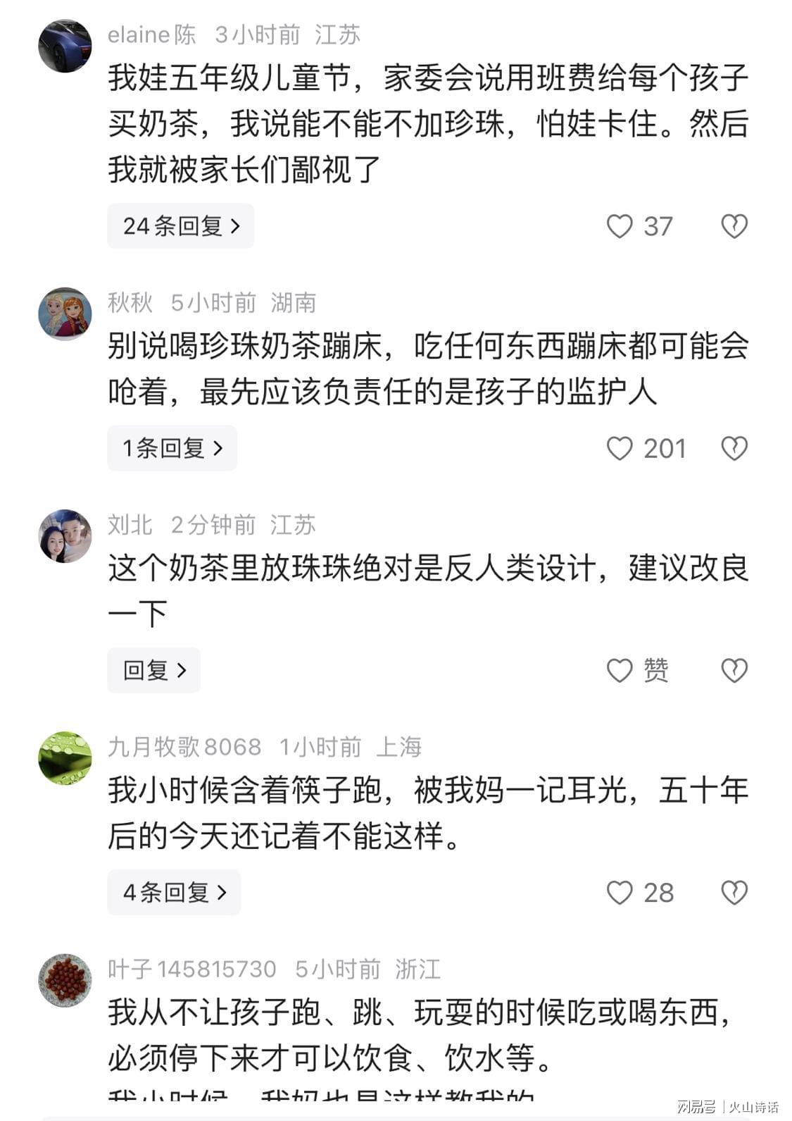 此事件引发网友热议。有网友评论道:“别说喝珍珠奶茶蹦床,吃任何东西蹦床都可能会呛着,最先应该负责任的是孩子的监护人。”另一位网友表示:“我从不让孩子跑、跳、玩耍的时候吃或喝东西,必须停下来才可以饮食、饮水等。我小时候,我妈也是这样教我的。”