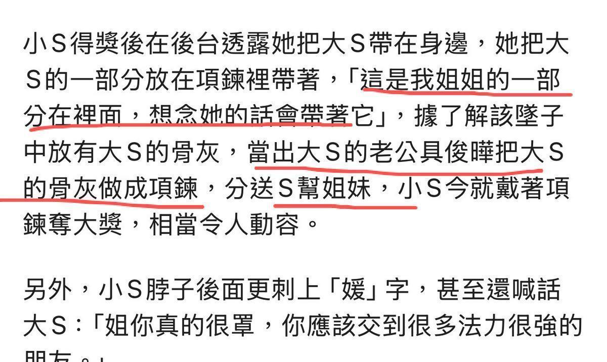 当记者问到这个项链时,小S毫不避讳地说“姐姐的一部分在里面”。