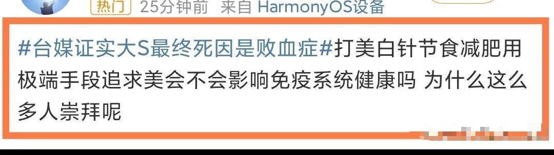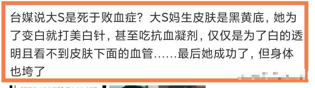 后来据媒体所说,大S真正的病因是败血症。