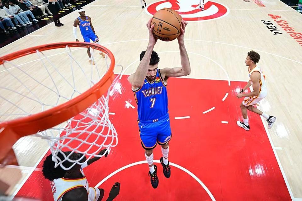 第三节成为比赛转折点,亚历山大单节狂轰17分,特雷杨则陷入得分荒单节0分。霍姆格伦在内线持续发威,雷霆单节打出39-25的攻击波,三节战罢以99-80领先。前三节亚历山大17投12中高效砍下30分,霍姆格伦贡献23分9篮板,雷霆四人得分上双;老鹰特雷杨10分9助攻,四人得分上双。