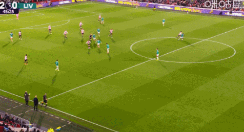 萨拉赫左脚停球后右脚抽射破门,将比分定格为2-3,但为时已晚。