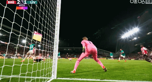 范戴克禁区线犯规送点,蒂亚戈主罚命中,布伦特福德3-1领先。