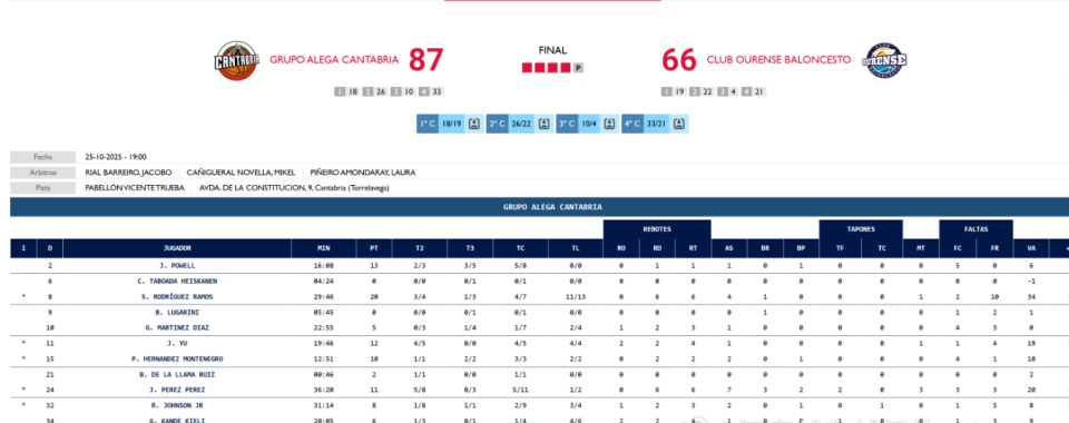 北京时间10月26日,中国男篮国手余嘉豪在留洋西乙联赛的征程中迎来高光时刻。本场比赛中,他首发登场20分钟,以5投4中的高效表现砍下12分4篮板,不仅完成个人留洋生涯首次得分上双,更刷新单场命中数纪录,最终率领坎塔布里亚队以87-66大胜奥伦塞队,取得赛季第二场胜利。