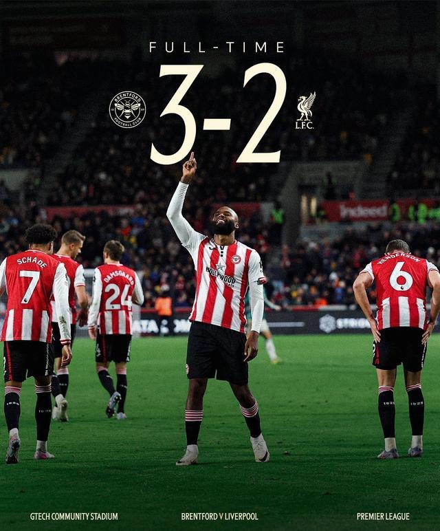 布伦特福德 3-2 利物浦:红军低迷,四连败跌至第6