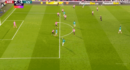 第5分钟,瓦塔拉凌空倒钩,布伦特福德1比0领先。对于利物浦而言,这是他们连续6场比赛先丢球。第45分钟,沙德单刀破门,布伦特福德将比分扩大为2比0。半场补时阶段,凯尔凯兹抢点为利物浦扳回一球。