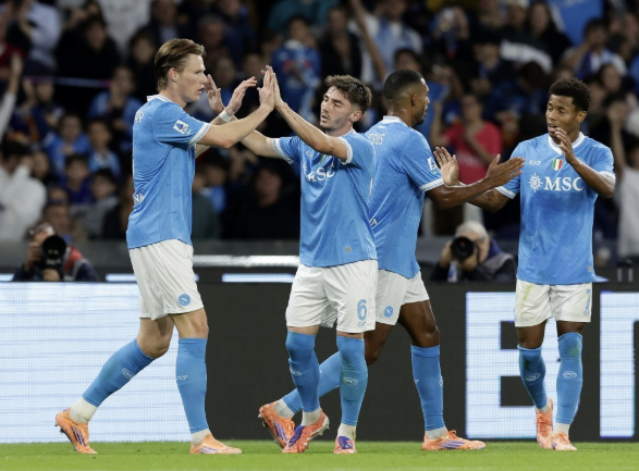恰尔哈奥卢随后点球扳回一城,但安古伊萨奔袭破门,比分定格在了3:1。那不勒斯超越米兰重夺意甲榜首,国米各项赛事7连胜被终结。