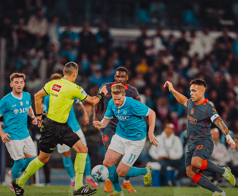 比赛第30分钟,迪洛伦佐突入禁区被阿切尔比放倒,裁判判罚点球。第33分钟,德布劳内主罚命中但受伤下场。第54分钟,那不勒斯快速反击,斯皮纳佐拉精准传球,麦克托米奈禁区外抽射破门。第59分钟,布翁乔尔诺手球送点,恰尔汗奥卢扳回一城。第66分钟,安古伊萨连续配合后斜射破门锁定胜局。最终,那不勒斯3-1终结国米七连胜,超越AC米兰登顶意甲。