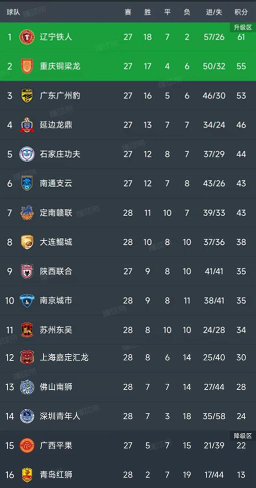 北京时间10月26日,中甲联赛第28轮率先结束了4场激烈对决,各队积分排名随之更新,保级形势也逐渐明朗。以下是本轮比赛的详细战况及最新积分榜情况。