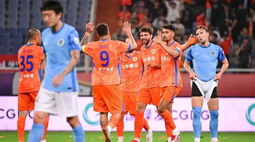 同一天下午,在山东泰山队的训练基地,代理主帅韩鹏正为26日与上海海港的中超比赛做着紧张的准备。从训练情况来看,泰山队一线队只有20名球员参加了合练,五名外援均可以出战,但本土球员王彤没有参加。韩鹏在训练后明确表示了对阵海港的比赛态度:“我们的目标就是胜利,要给海港上强度。”球队的年轻化进程也在加速推进,20岁的彭啸在训练中展现出了出色的状态,不仅在远距离传球PK中胜出,还做了一个高跳的庆祝动作,引来了队友们的阵阵掌声。