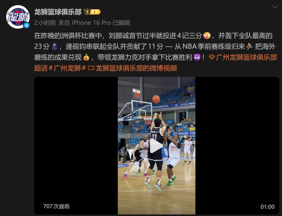 “从NBA季前赛练级归来,把海外磨练的成果兑现。”10月23日,广州龙狮男篮这么更新球队官方社媒账号。