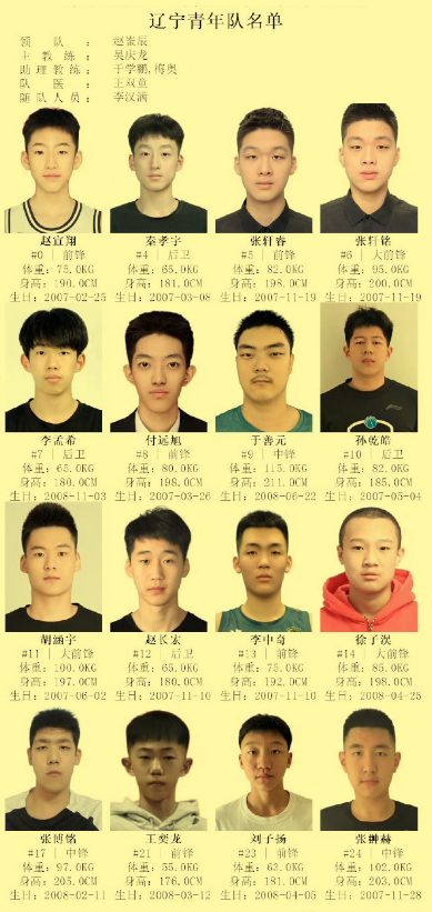 球员阵容同样不容小觑。除了攻守兼备的中锋于善元,球队还拥有张博铭、张翀赫两名中锋;小前锋位置上,赵宣翔、张轩睿、付远旭、李中奇、王奕龙和刘子扬等球员实力出众;大前锋则有张轩铭、胡涵宇、徐子淏;后卫线由赵长宏、孙乾皓、李孟希、泰孝宇组成,全队共16人。