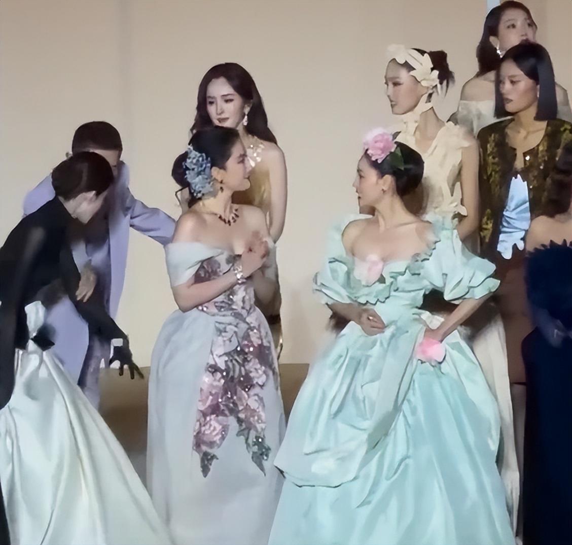 杨幂姗姗来迟后,因钟楚曦与刘亦菲热聊未让位,只能站在刘亦菲身后,半身被挡。最终在娜扎帮助下,杨幂才得以与刘亦菲并肩,但全程面无表情,拒绝眼神接触。