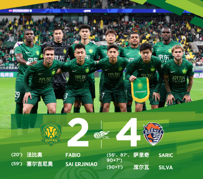 在北京时间10月26日晚结束的中超第28轮一场焦点战中,北京国安延续了近期低迷表现,他们在两度领先的情况下被青岛海牛追平,并且在补时阶段连丢2球,最终以2-4的比分被对手逆转,吞下苦涩失利。