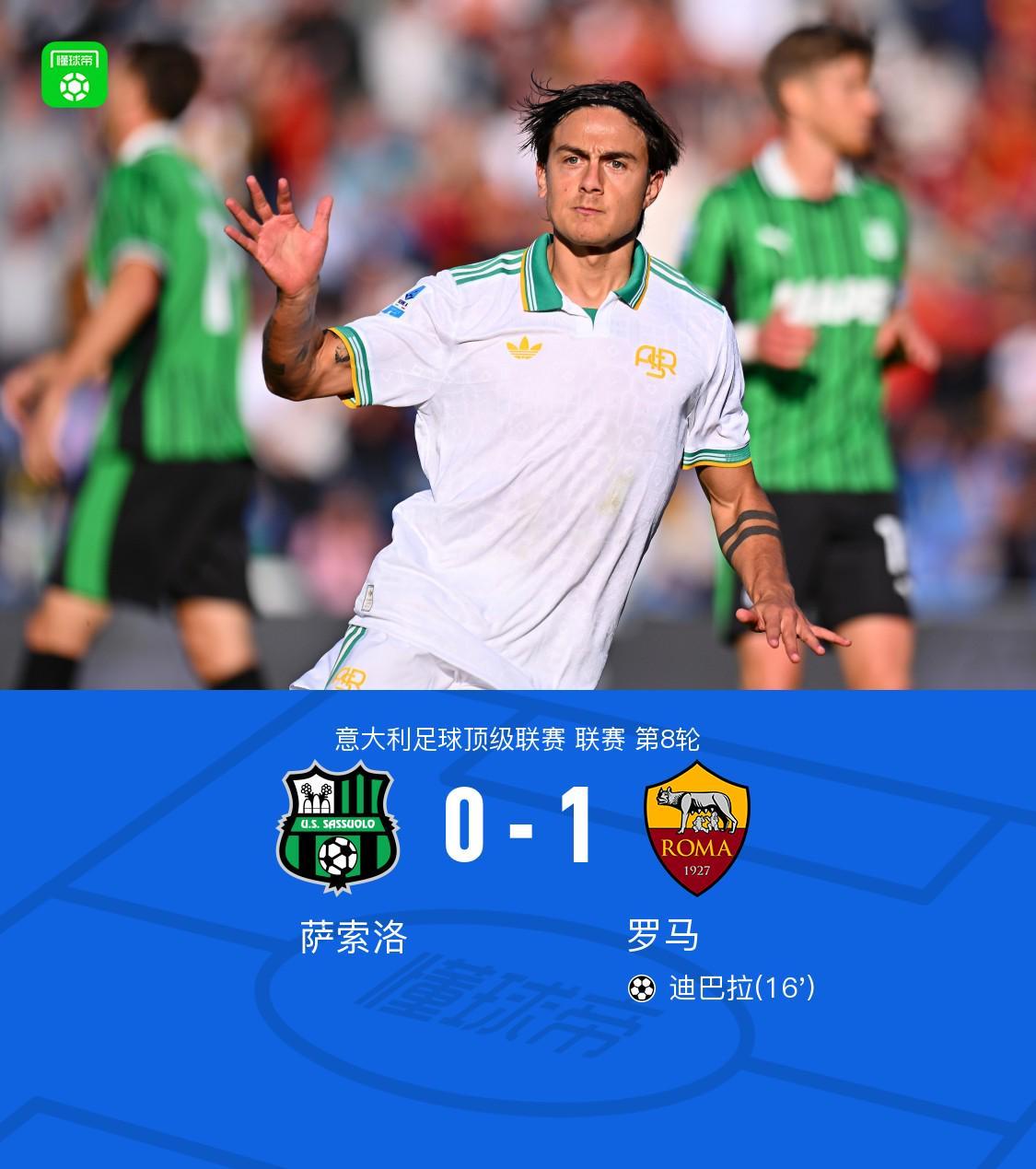 第16分钟,克里斯坦特推射被扑出,迪巴拉迅速补射入网!萨索洛0-1罗马,这一进球成为全场转折点。