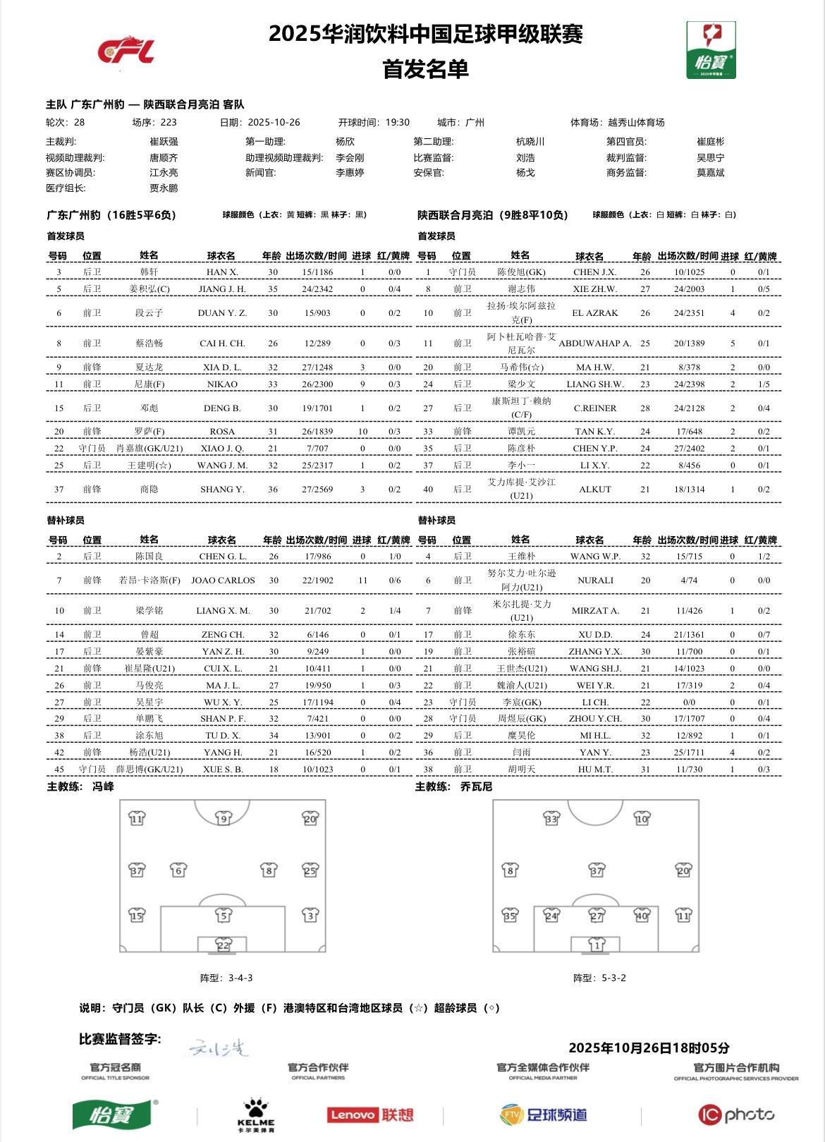 北京时间10月26日19:35,中甲联赛第28轮迎来一场焦点对决,目前中甲排名第3的广东广州豹队坐镇主场,迎战来访的陕西联合队。本场比赛,双方均派出了双外援阵容出战,其中,备受瞩目的谭凯元更是首发登场,为比赛增添了更多看点。