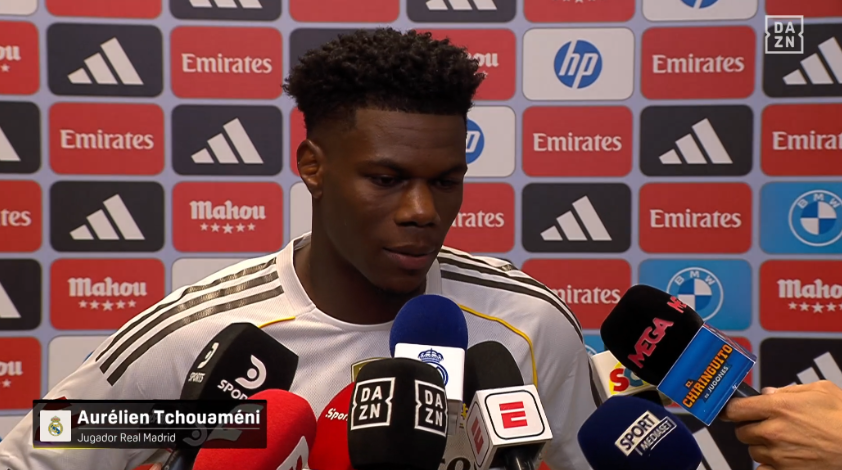 雷速体育10月27日讯,在本赛季西甲联赛的首场国家德比中,皇家马德里坐镇主场以2-1的比分力克巴塞罗那,赢得了这场备受瞩目的对决。赛后,皇马中场大将楚阿梅尼在混合采访区分享了他的赛后感受。