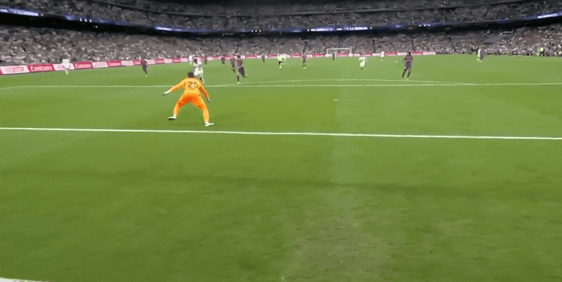 第22分钟,姆巴佩展现顶级射手本能。他反越位成功后直面门将,冷静推射远角得手,帮助皇马取得领先。这粒进球也是他国家德比生涯的第6球,继续刷新个人纪录。