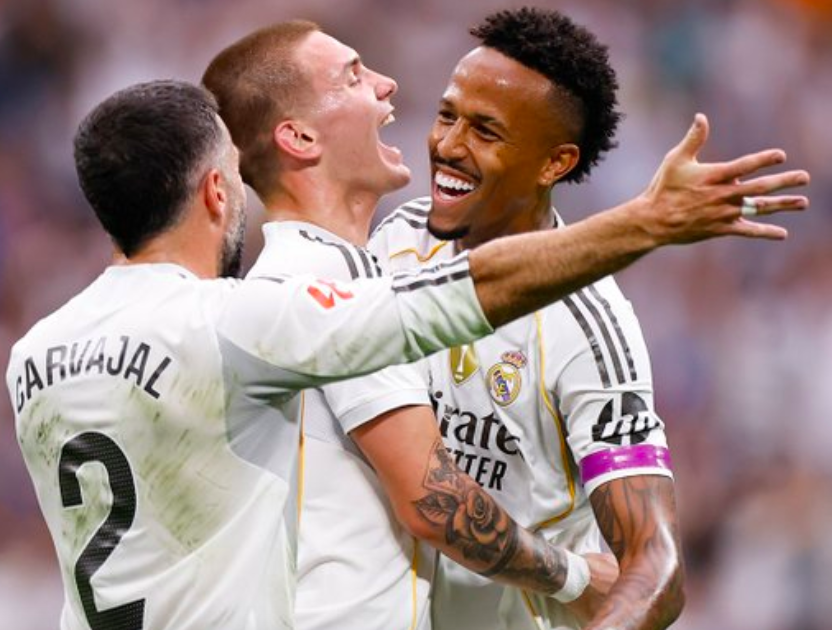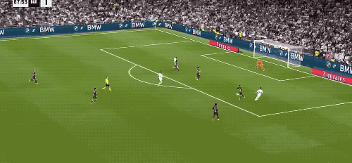 皇马很快便卷土重来。第43分钟,维尼修斯下底传中,米利唐头球回做,贝林厄姆轻松补射,皇马再次取得了领先。