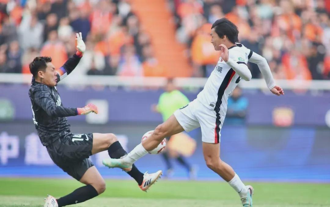10月26日下午,争冠三巨头之上海海港,率先亮相中超第28轮,对手是实力强劲的山东泰山。比赛开场仅9分钟,刘若钒就与小将李新翔完成连线,率先完成破门,为夺冠路再铺一砖。