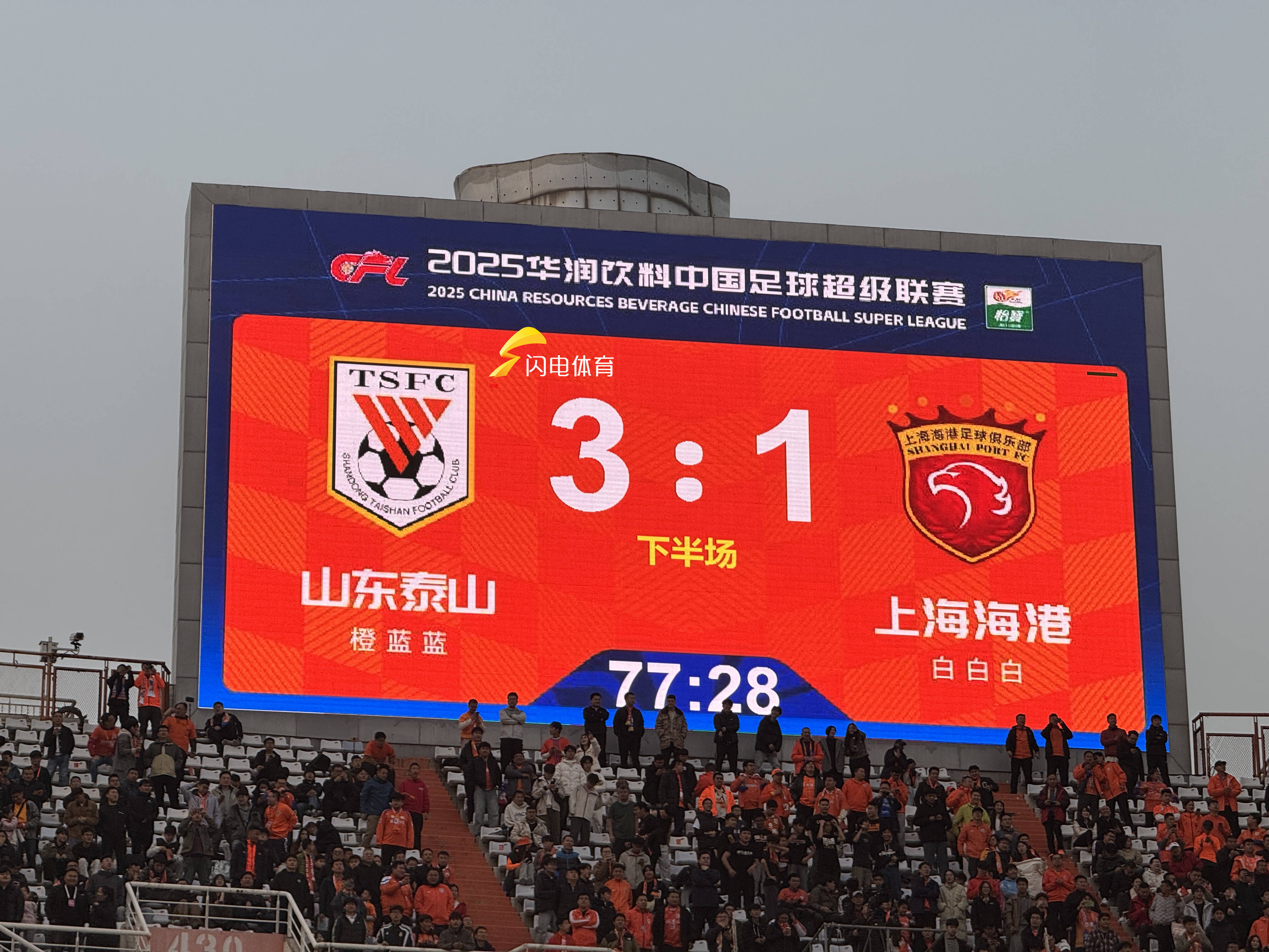 易边再战,泰山队攻势渐起。第49分钟,克雷桑头球冲顶击中横梁,卡扎伊什维利的补射被张琳芃挡出。第62分钟,泽卡再次反越位成功,晃过张琳芃后横传门前,刘洋轻松推射空门得手,泰山队2-1反超比分!第77分钟,克雷桑开出任意球,卡扎伊什维利转身凌空抽射破门,完成梅开二度的同时将比分扩大至3-1。此后双方均无建树,泰山队最终主场全取三分。
