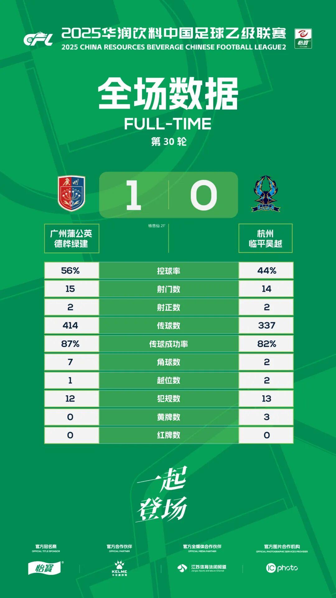 最终,全场比赛结束,广州蒲公英德桦绿建1-0战胜杭州临平吴越。
