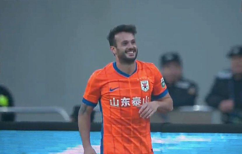 第42分钟,山东泰山抓住反击机会。泽卡突破两人包夹后传球,卡扎伊什维利单刀赴会,冷静推射扳平比分,1-1!