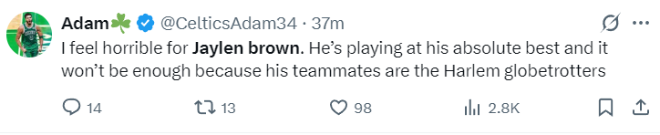 赛后,凯尔特人媒体纷纷表示为杰伦·布朗感到难过。他们认为,布朗目前的状态堪称最佳,但仅靠他一人远远不够,他身边的球员都没能发挥出应有的水准。这也成为了凯尔特人队三连败的重要原因之一。