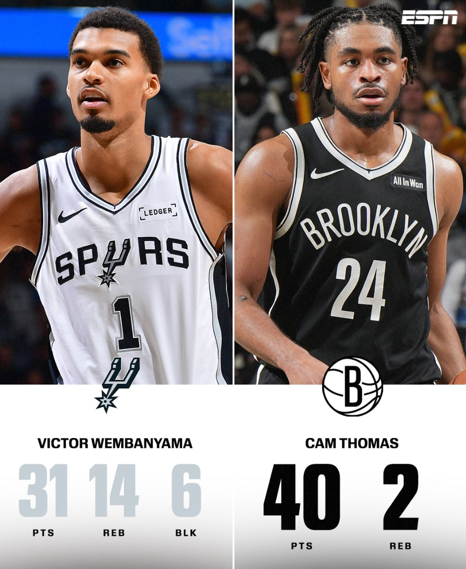 这场比赛,托马斯与马刺队的文班亚马形成了精彩的对轰态势。文班亚马全场21投9中,拿下31分14篮板6盖帽的全面数据,而托马斯则以25投11中的表现,狂砍40分2篮板0助攻。尽管托马斯个人数据耀眼,但最终还是文班亚马带领马刺队取得了胜利。托马斯虽然得分高,但要让他独自扛起球队取胜,难度显然很大,他也被球迷戏称为篮网的“摆烂神器”。