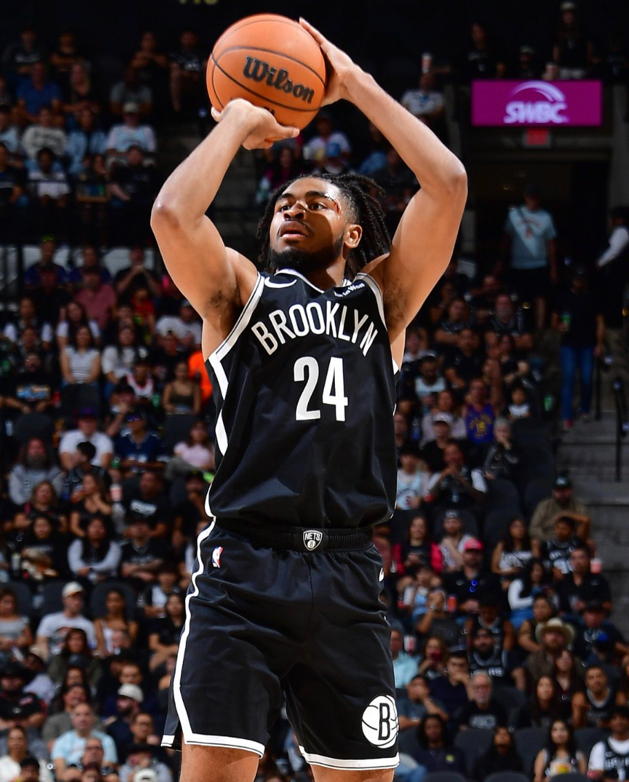 在篮网与马刺的激烈对决中,卡姆-托马斯再次以惊人的表现吸引了全场的目光。全场比赛,他狂砍40分,却意外地没有送出任何一次助攻。作为篮网的先发二号位,托马斯在32分钟的出场时间里,疯狂出手25次,命中11球,其中包括5记三分球,三分命中率高达41.7%,罚球更是13罚全中,展现出了他出色的得分能力。