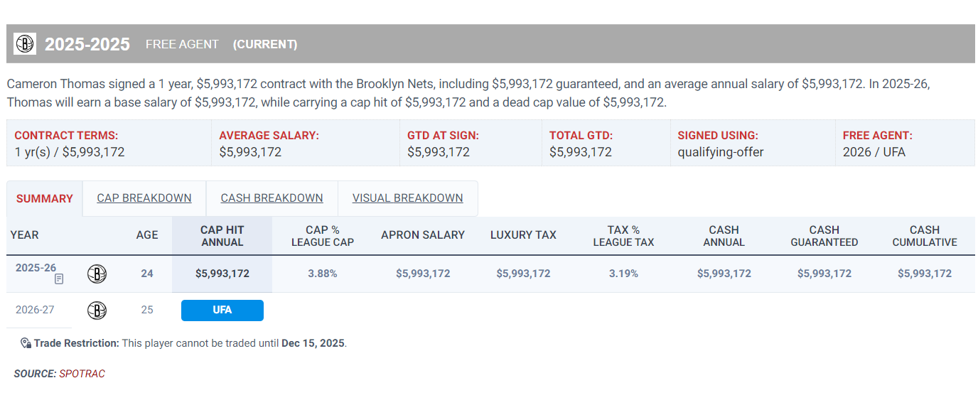 今夏,篮网并没有给托马斯想要的均薪3000万的长约合同,最终他只能接受一年600万的资质报价重返布鲁克林。上赛季,他已经场均能够砍下24分,但显然,这样的表现还不足以让他获得管理层的全面认可。未来,托马斯需要继续提升自己的全面能力,才能在NBA的舞台上走得更远。