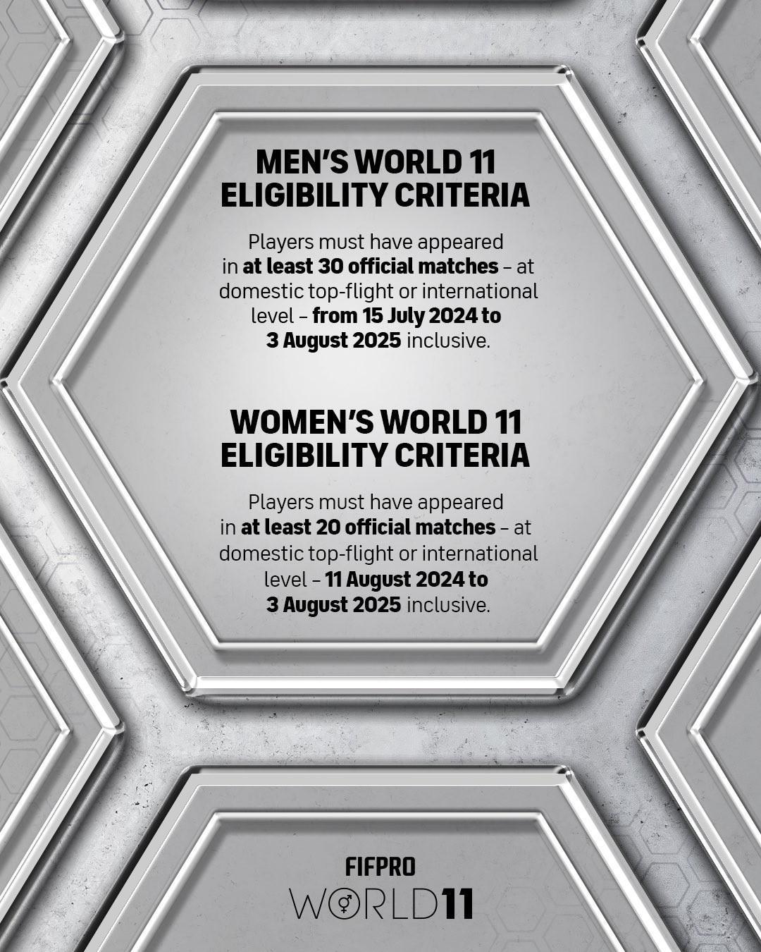 根据FIFPRO公布的最新评选规则,男女足最佳阵容的入选资格存在差异: