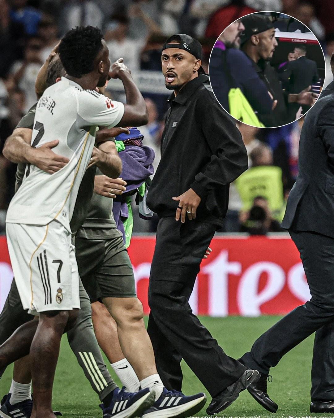 随着终场哨声的响起,双方球员的情绪并未随之平息。赛后,皇马与巴萨的球员在场内外爆发了激烈的冲突。就在这时,一个意外的身影冲入了混乱之中——因伤缺阵的拉菲尼亚。