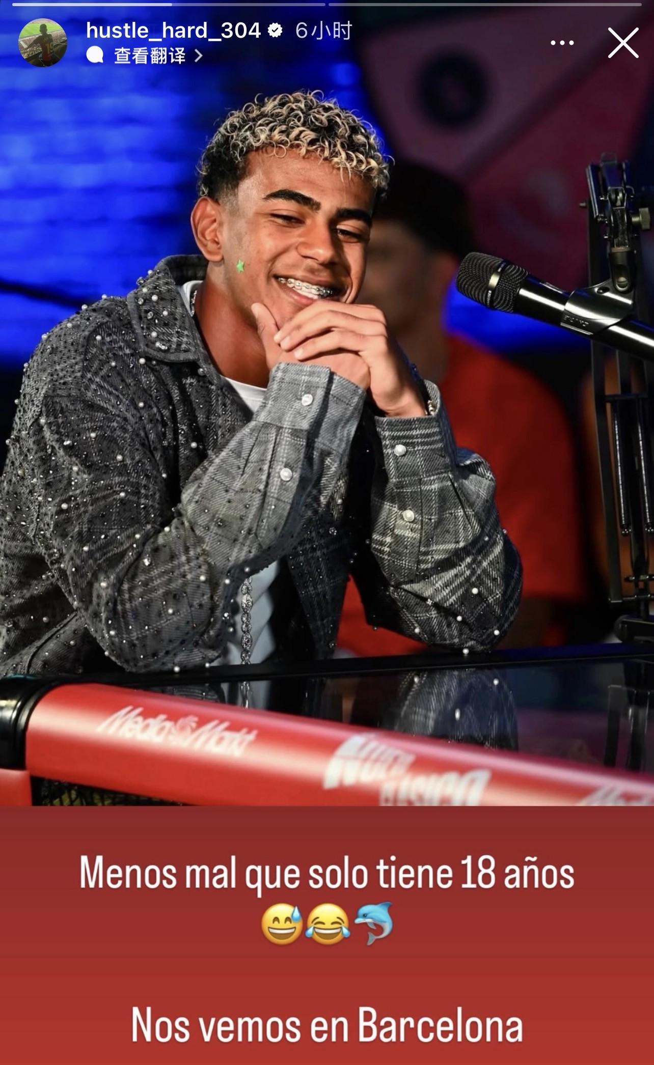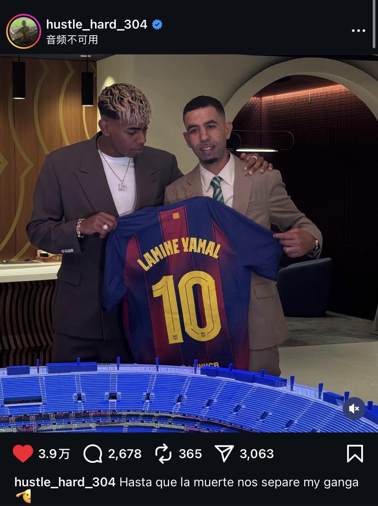 赛后,亚马尔的父亲在社交媒体上异常活跃,连发了三条帖子,每一条都透露出对儿子的深深关爱与期待。他的第一条帖子写道:“幸好他已经18岁了,我们巴塞罗那见。”这句话不仅透露出对儿子成长的欣慰,更暗示了未来在巴塞罗那的某种约定或期待,瞬间引发了球迷们的无限遐想。