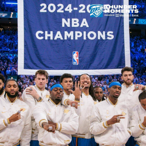 作为一支搬迁至俄克拉荷马城不到20年的年轻球队,雷霆队的主场球馆上空曾长期悬挂着老将科里森退役的4号球衣。然而,在本赛季的揭幕战上,一面崭新的旗帜——2024-25赛季总冠军锦旗,终于在这片场馆上空高高飘扬,标志着雷霆队迎来了历史性的荣耀时刻。