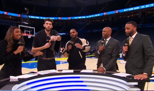 本场比赛也是ABC(美国广播公司)回归转播的首场赛事。赛后访问时,霍姆格伦应节目要求,当着三位无冠前辈安东尼、卡特、麦迪的面大秀冠军戒指。麦迪也自嘲表示:“自己很感谢有这个机会来这里,因为自己从来没有机会拿到冠军戒指。”而霍姆格伦也面对镜头为新赛季开出了一个好头:“总冠军是篮球的巅峰,但如果你只在意在六月,你就没办法站在那个赛场上。我只关注如何让每场比赛更好,不论个人还是团队。”
